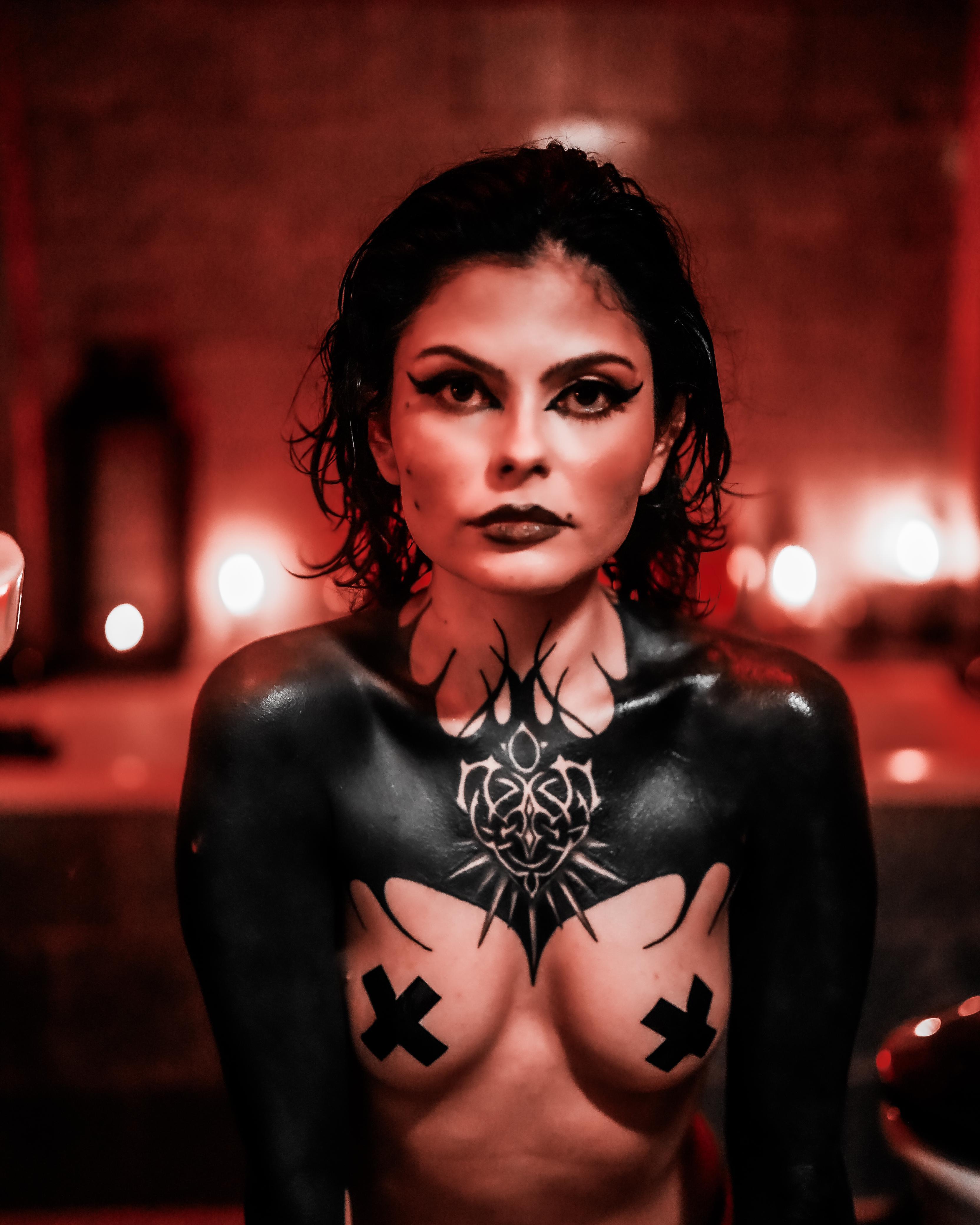 Composições autorais com formas e texturas guiadas pela anatomia de cada corpo. Misturo contrastes pra construir narrativas sombrias que conversam com os seus desejos.